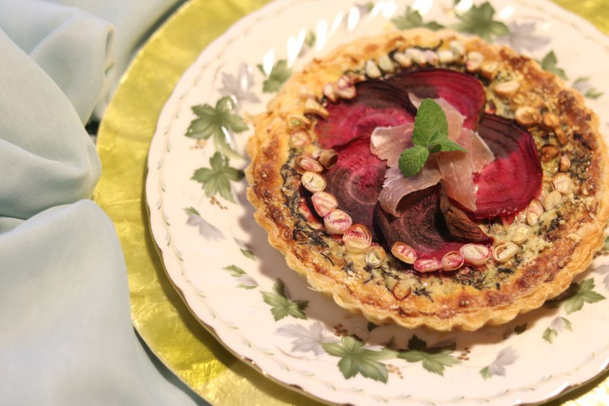 *ビーツ彩る 長ねぎと生ハムのキッシュ