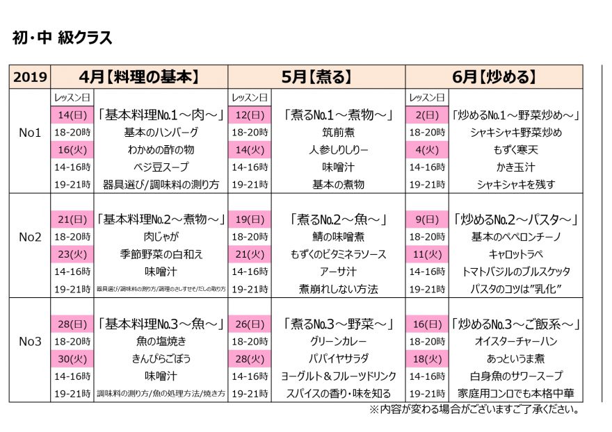 定期クラスは毎週1回、月3回のレッスンのクラス