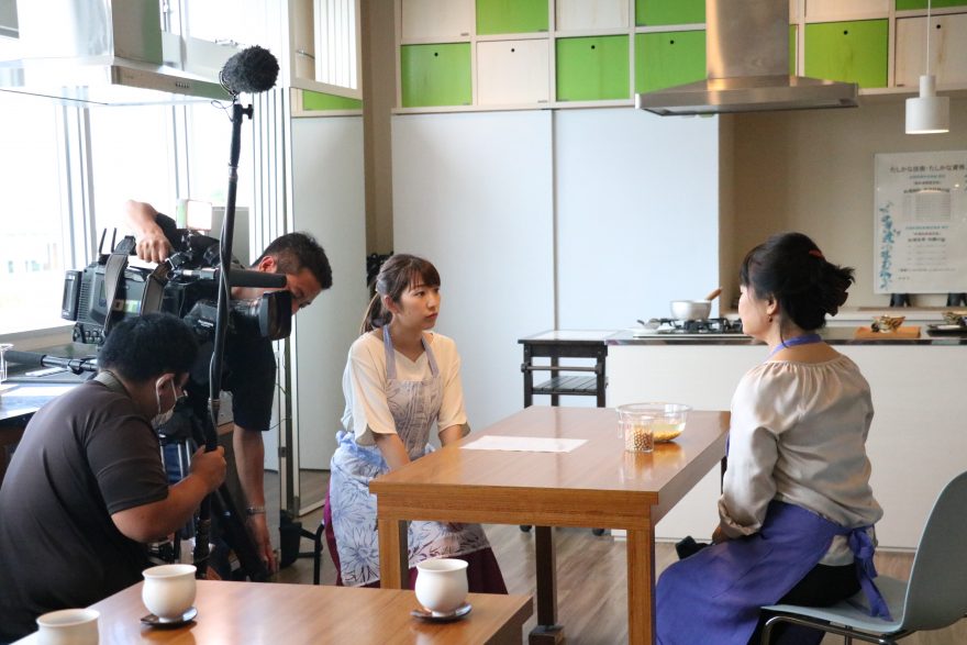 小林アナウンサーと一緒にゆし豆腐作りもしましたよ!